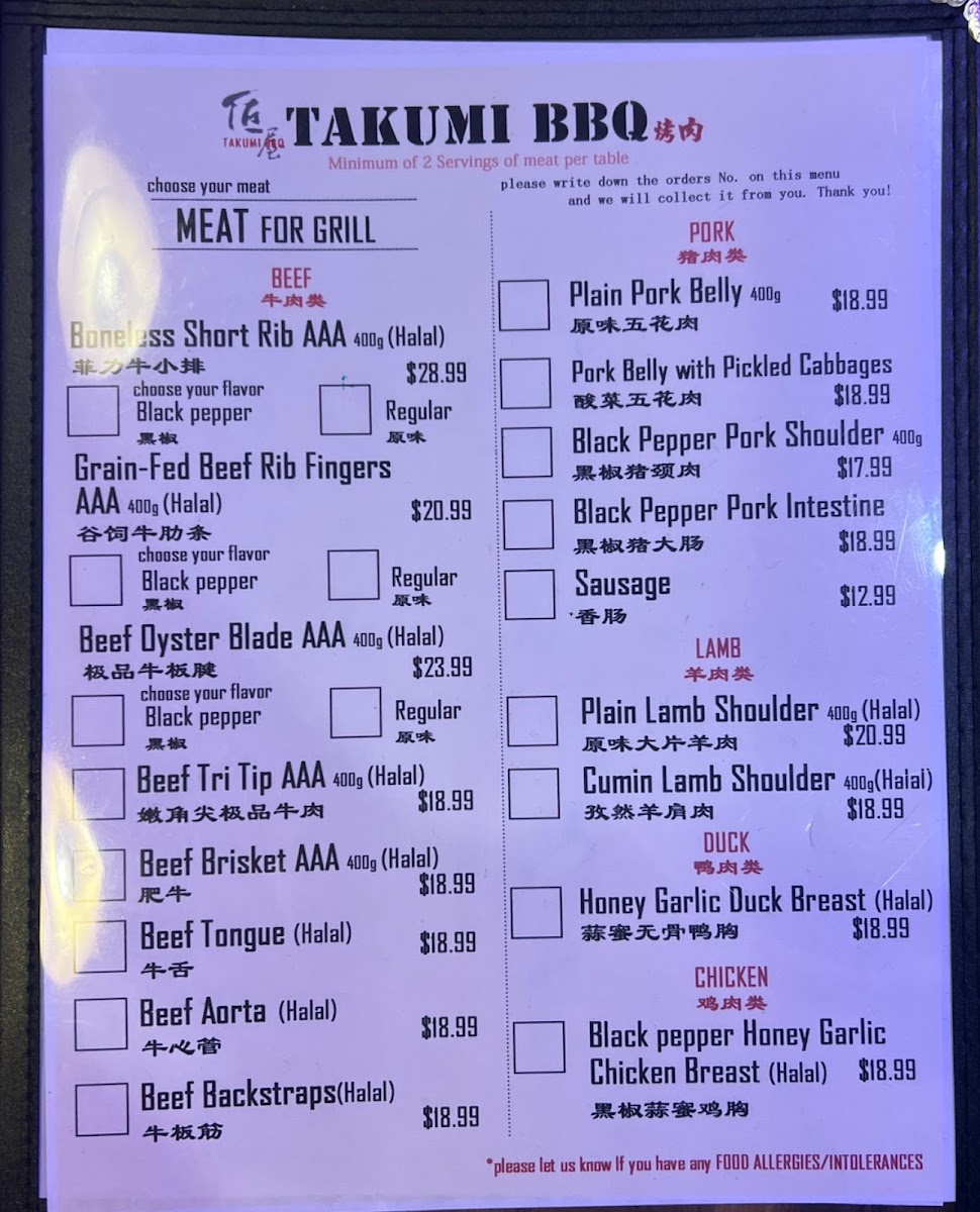 Introducing TAKUMI BBQ, located at 956 Merivale Rd in Ottawa, this gem offers a unique fusion of Northern Chinese and Korean flavors that captivates the palate. The menu showcases a diverse range of HALAL meats, including tender brisket and succulent ribs, each grilled to perfection.